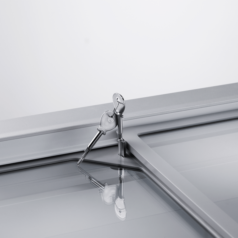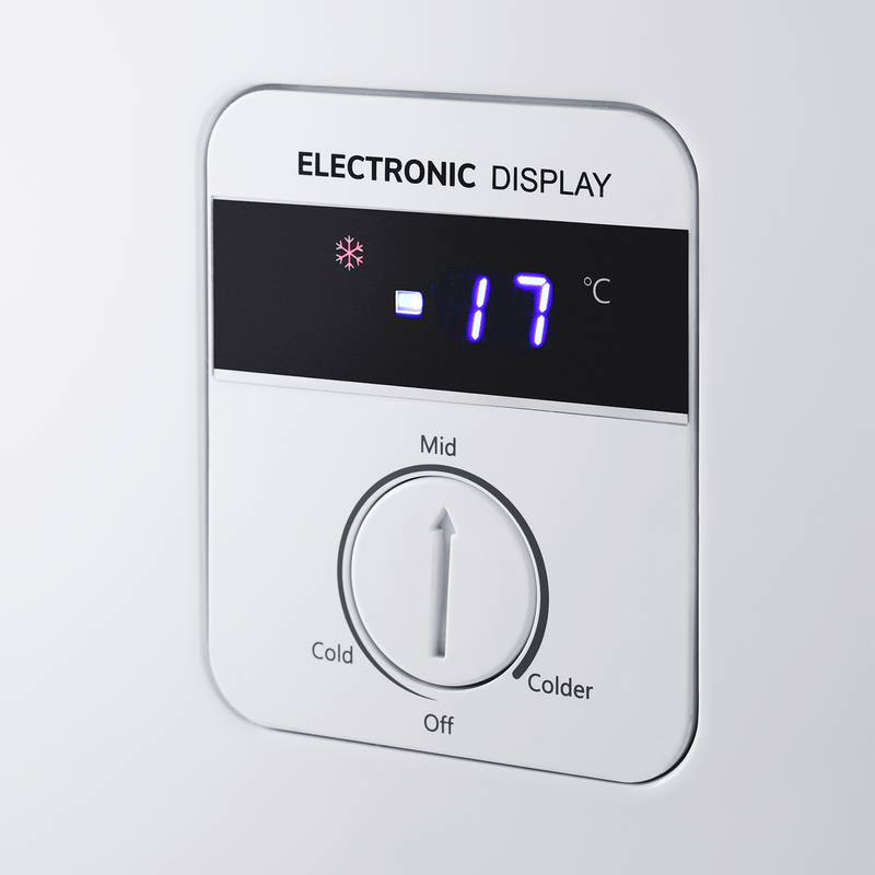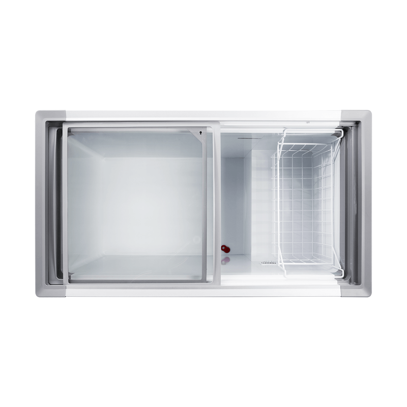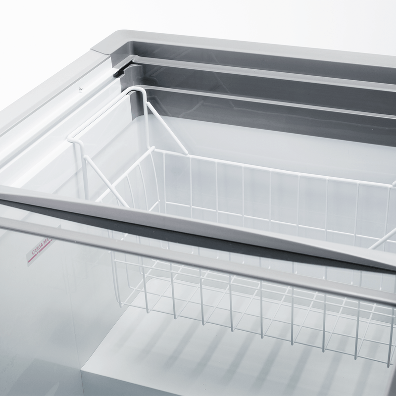 Nuestro congelador horizontal incluye control de temperatura mecánico con visualizador digital, puertas de vidrio templado con protección LOW-E y tres niveles de enfriamiento. Su interior blanco mejora la visibilidad de productos, y las canastas metálicas anticorrosivas ofrecen organización duradera.