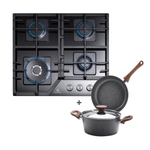 Encimera a Gas, 4 quemadores. Máxima potencia y eficiencia, quemador triple corona ultra-rápido. Tablero de vidrio templado