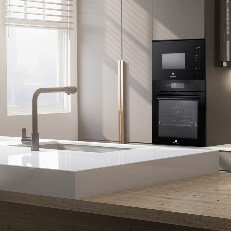 Microondas empotrable 25 litros, potencia y funciones inteligentes, ideales para el día a día. Facilidad de uso, panel total touch. Grill con parrilla incluida. 8 funciones inteligentes. Modelo empotrable y acabados en vidrio negro con panel Total Touch.