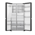 La puerta de la refrigeradora Side By Side 669 Litros Negra es cómoda y segura, mientras que la manija de metal agrega un plus de elegancia en la zona exterior. ¡Incluye dos porta huevos plásticos! Encuéntrala en color negro y cromo, elegiendo según tus gustos o el diseño de tu cocina.